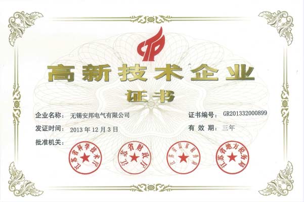 無錫安邦電氣獲得江蘇省高新技術(shù)企業(yè)認(rèn)定
